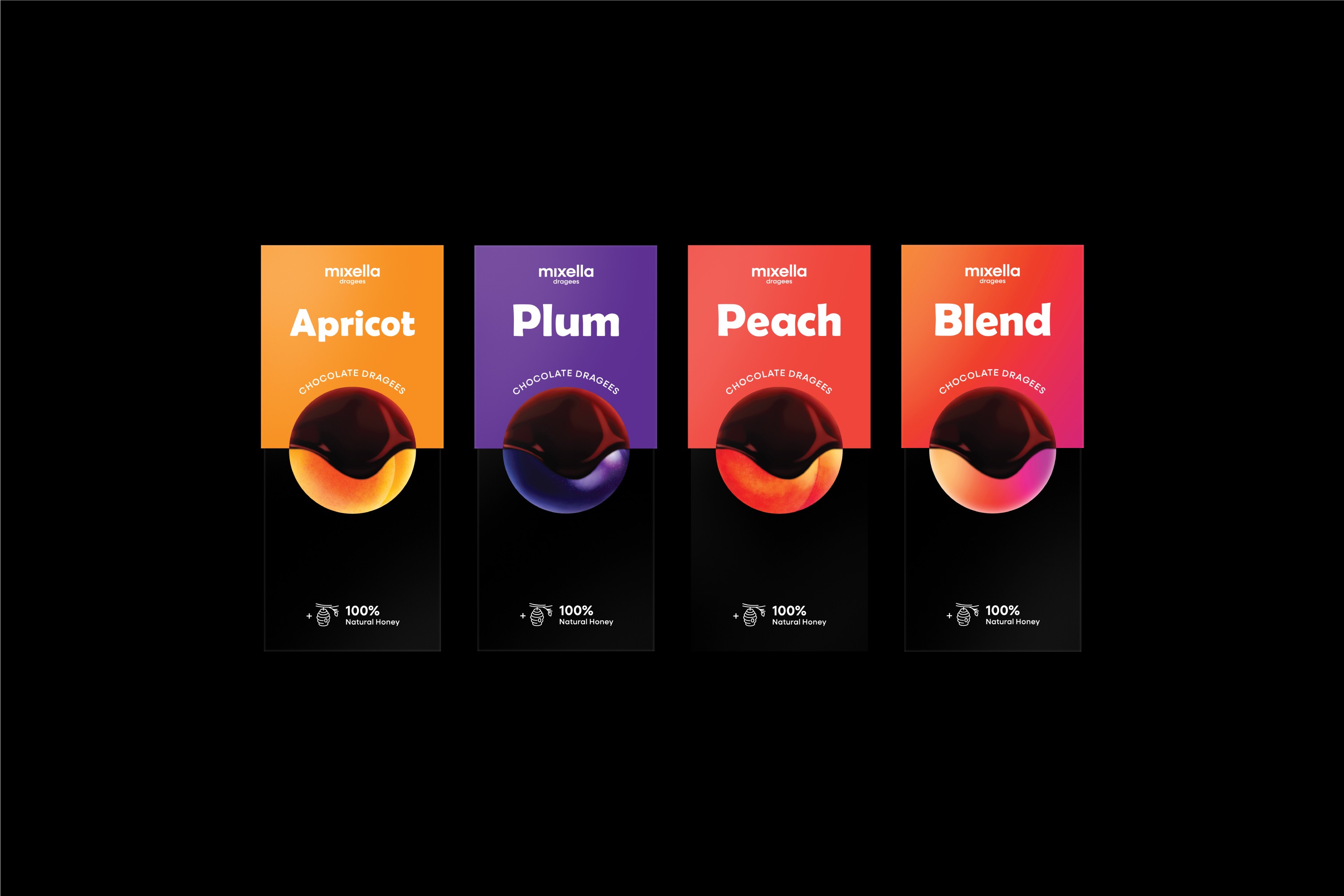 The Creative Concept Mixella is built around the idea of “The Art of Blending Flavors.” This concept serves as both a creative and strategic foundation, combining Armenian traditions with innovation. Fruits, mountain honey, and chocolate are treated as elements, carefully balanced to create a new confectionery experience. Five core values — quality, responsibility, gratitude, devotion, and perfection — guided every branding decision, from narrative tone to visual expression.