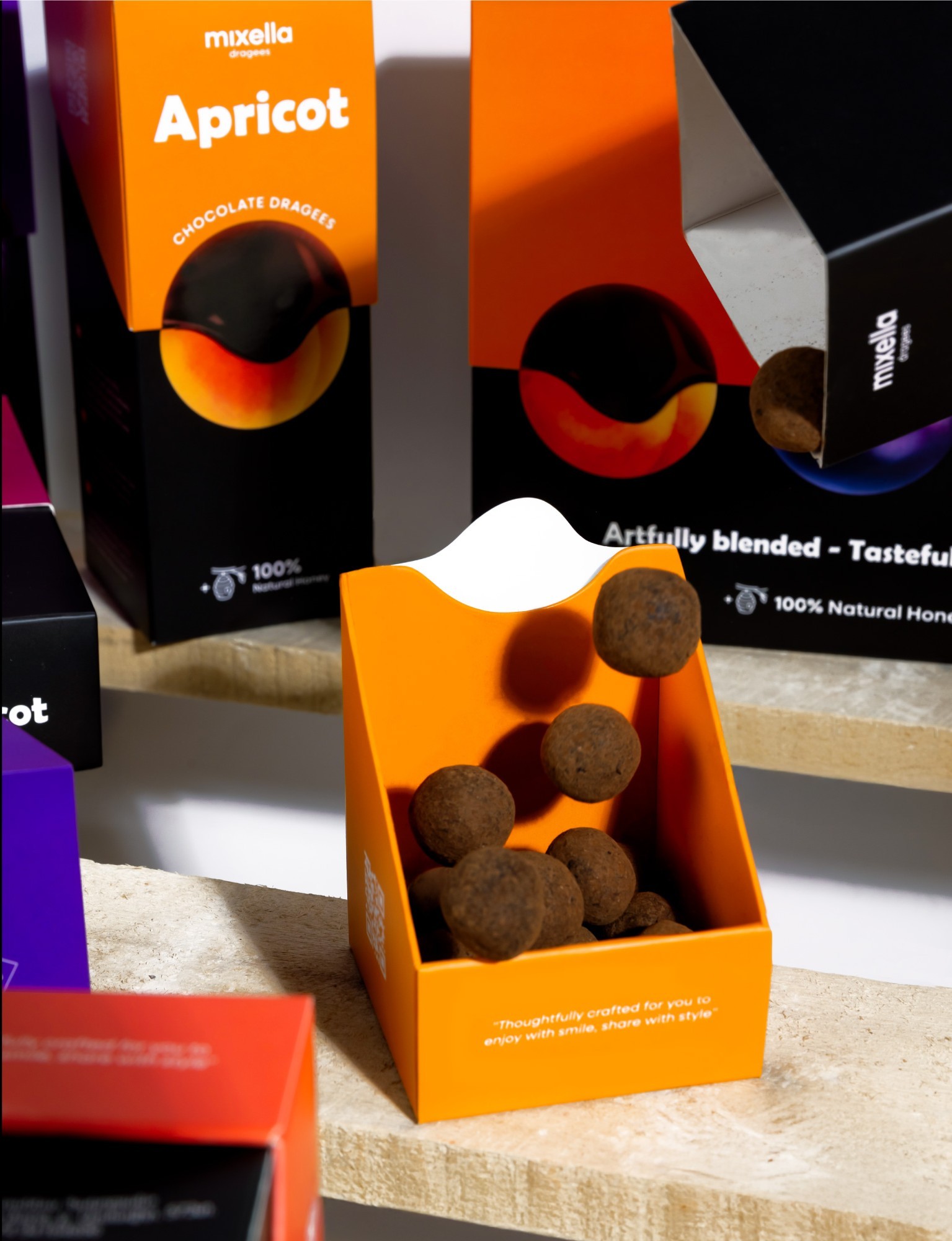 Naming The name “Mixella” reflects the essence of blending: the fusion of fruits, honey, and chocolate into a harmonious whole. It symbolizes the meeting point of Armenian heritage and contemporary confectionery culture.